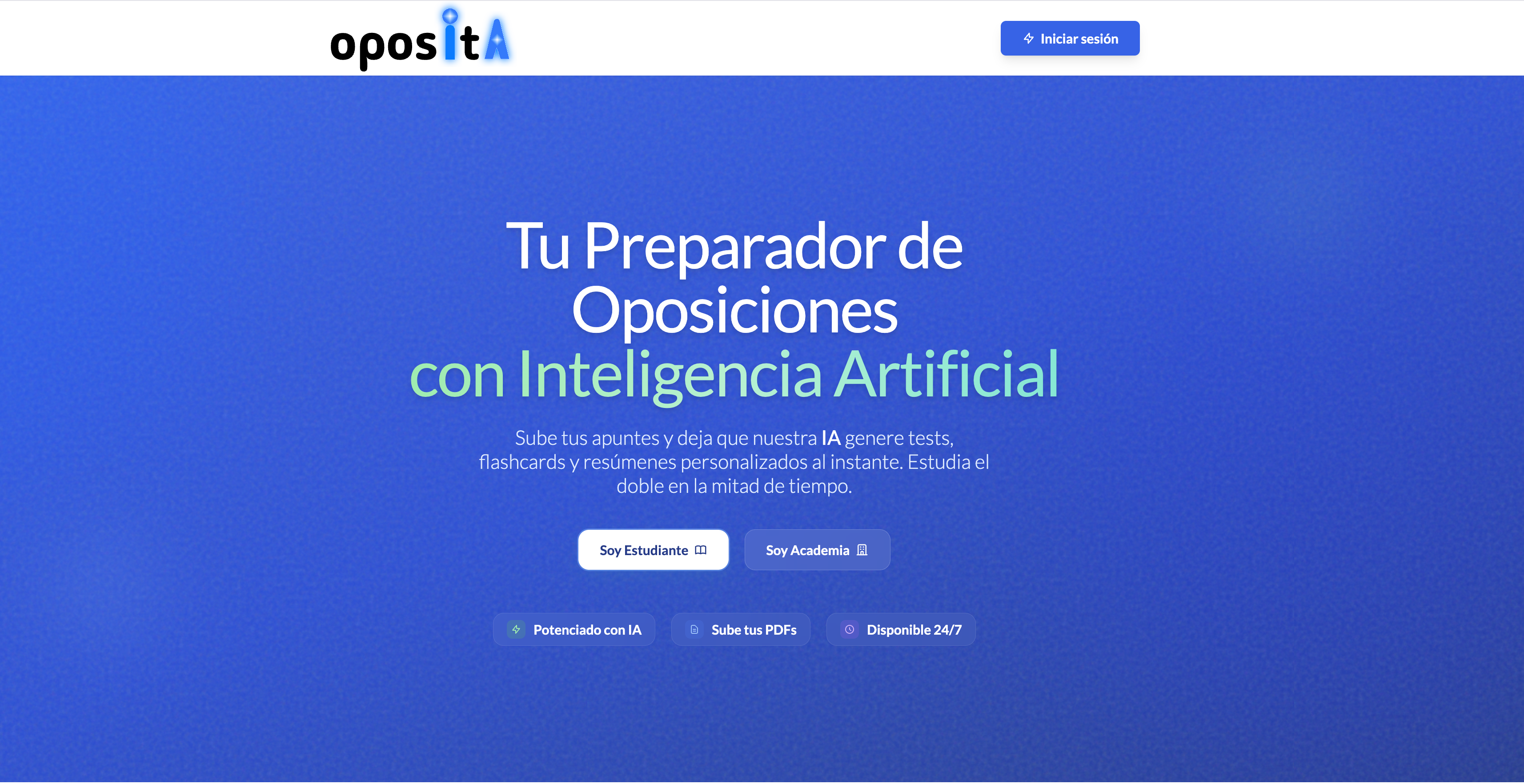 App para gestión de recursos de estudio de oposiciones. Permite crear tests personalizados y flashcards generadas con IA para optimizar el aprendizaje.